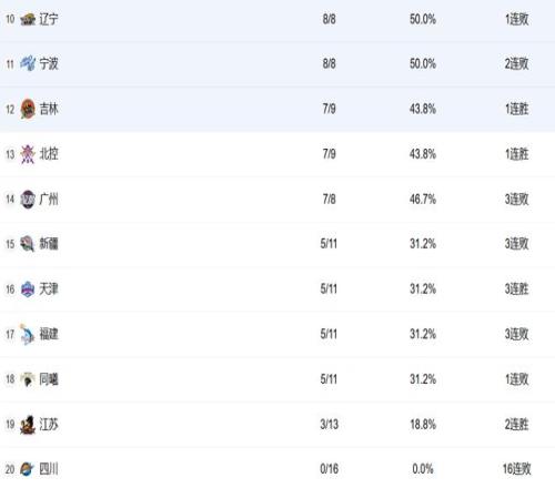 辽宁、宁波排在10和11。现在辽宁的情况非常糟糕,外援和本土球员的水平都不行,他们只能尽可能巩固季后赛的席位。宁波也是8胜8负,但他们已经两连败了,他们欠缺锋线,后续的赛程还比较艰难,看看能不能顶住吧。